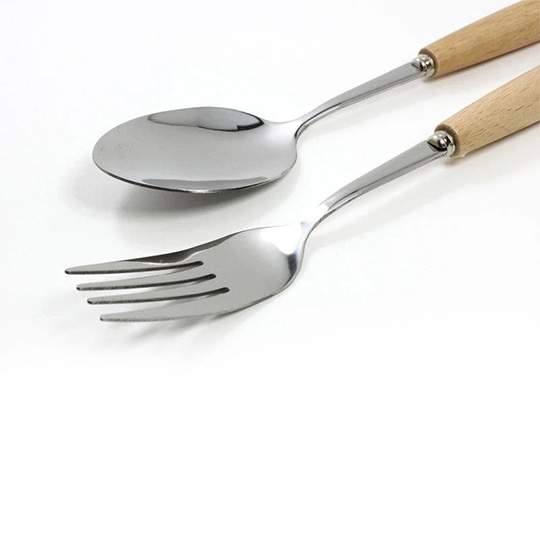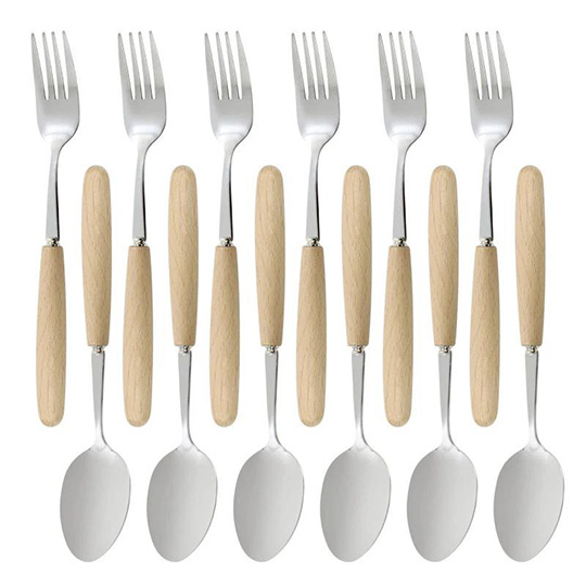 دستههای چوبی ارگونومیک این ست، حس طبیعی و راحتی در دست ایجاد کرده و کار با قاشق و چنگال را لذتبخش میکند.